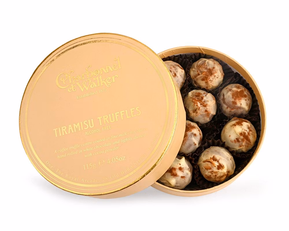 Tiramisu trøfler | Luksuriøs konfekt fra Charbonnel et Walker, silkemyk kaffe- og vaniljefylling, hvit og melk sjokolade, perfekt gave eller after-dinner godbit