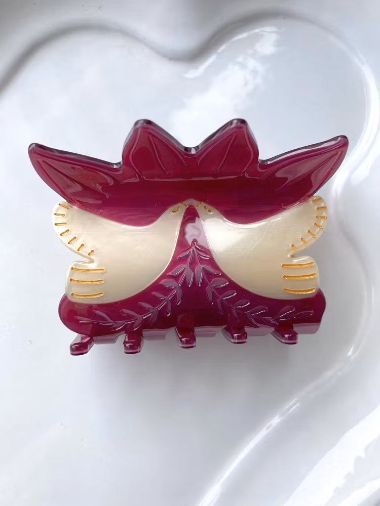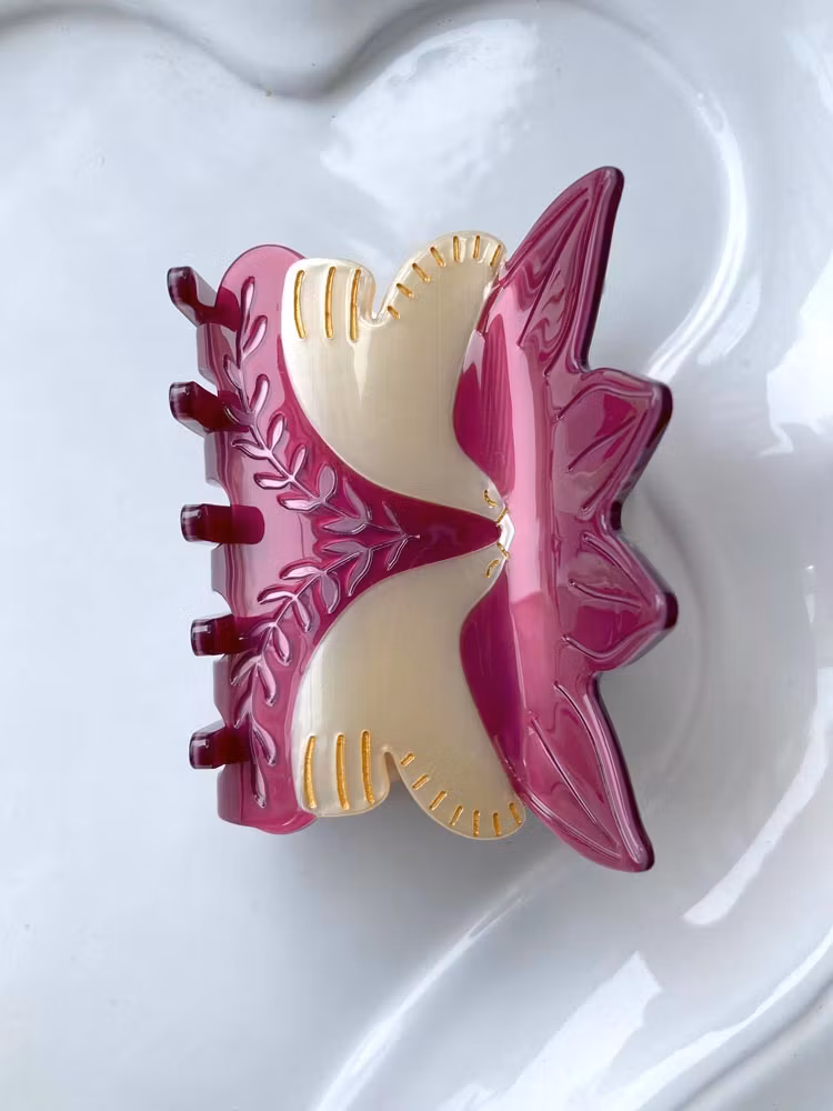 Vakker hårklype, 7 cm, leveres med stoffpose. Håndlaget av nedbrytbart materiale.