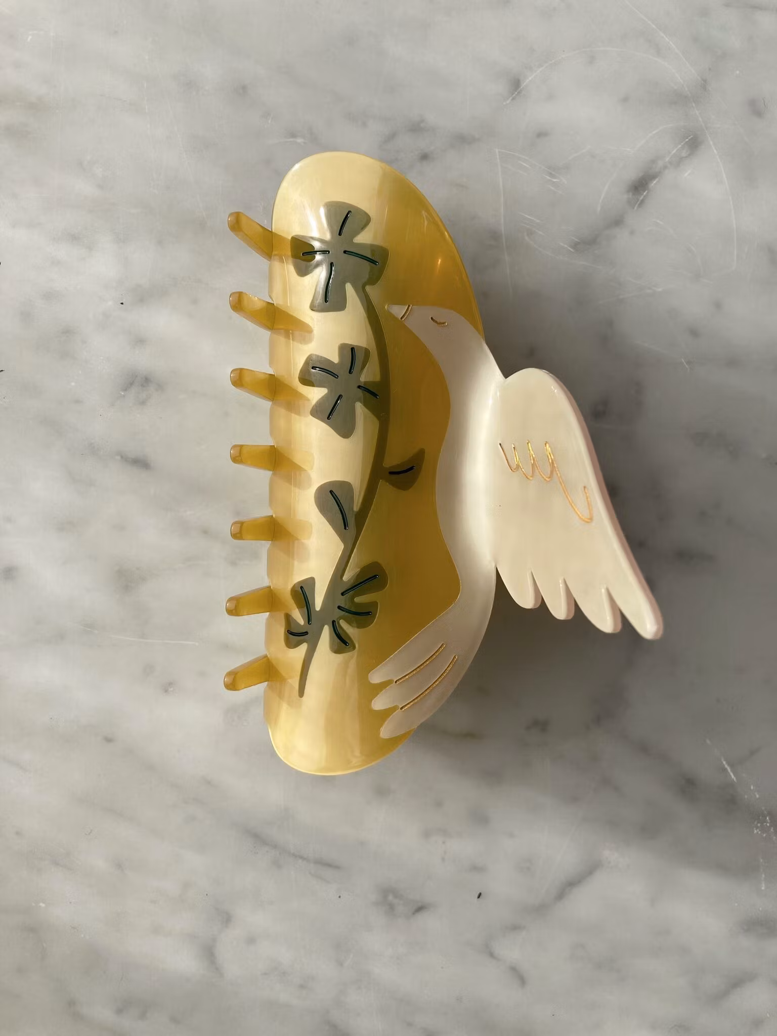 Vakker hårklype, 12 cm, leveres med stoffpose.Håndlaget av nedbrytbart materiale.