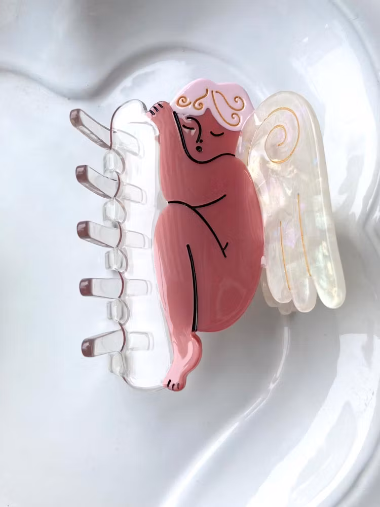 Vakker hårklype, 7,5 cm, leveres med stoffpose. Håndlaget av nedbrytbart materiale.