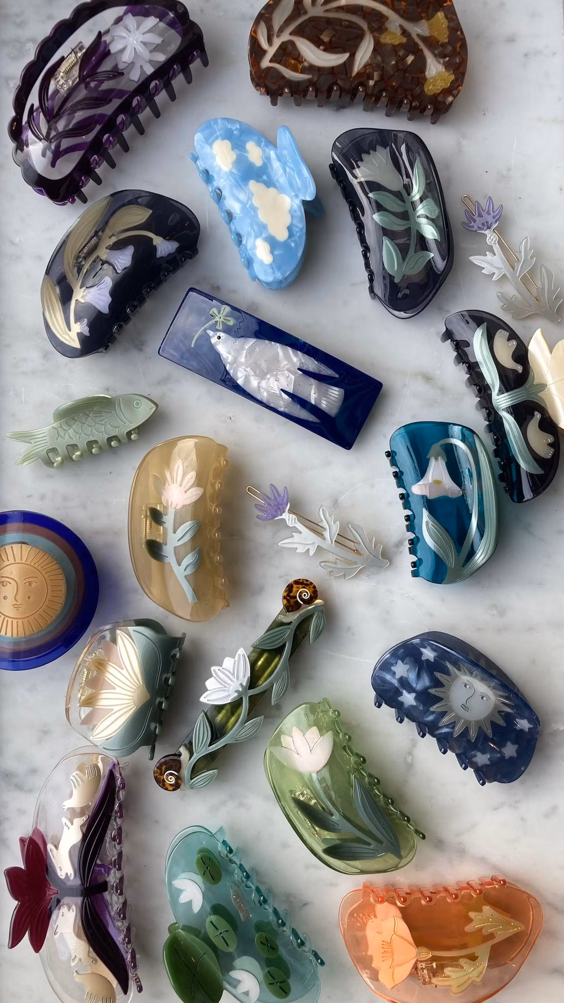 Vakker hårklype, 10 cm, leveres med stoffpose. Håndlaget av nedbrytbart materiale.