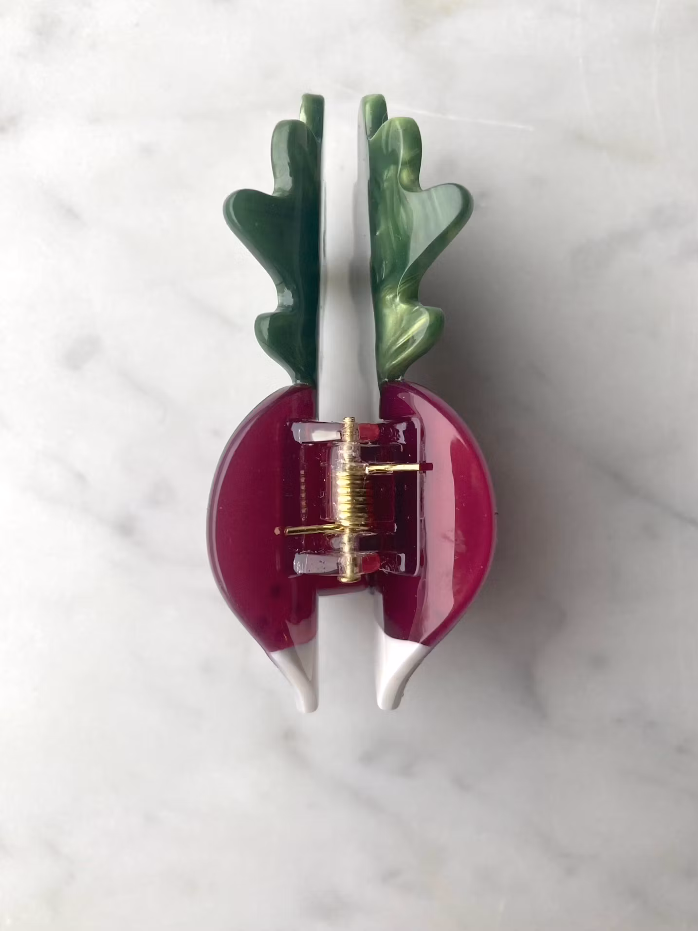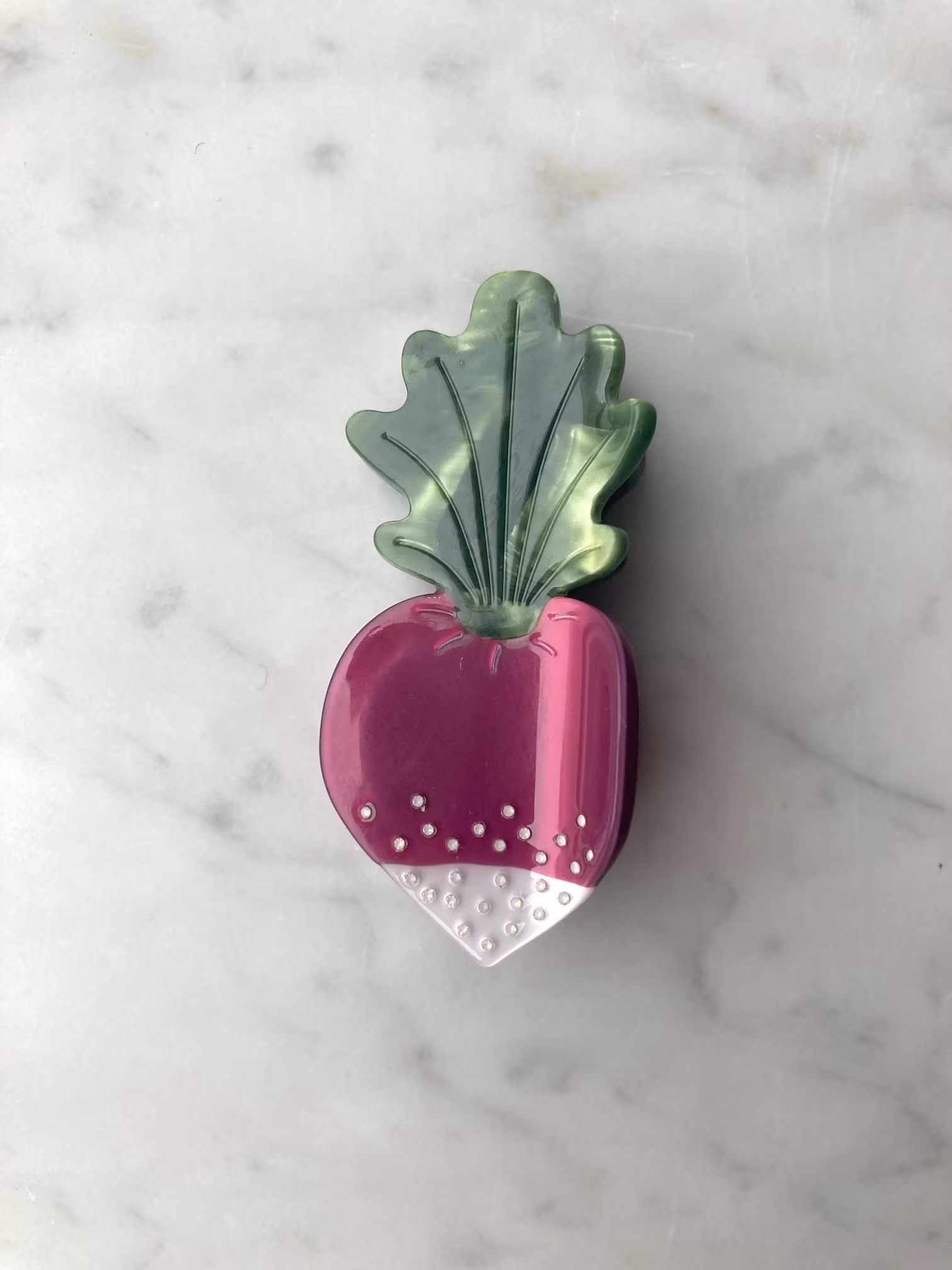 Hårklype, 7 cm, leveres med stoffpose. Håndlaget av nedbrytbart materiale.